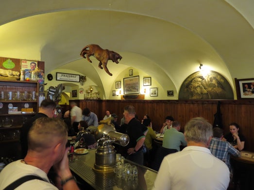 The front door is usually closed, and tourists often pass by without noticing. Once inside, you'll find yourself among friendly Czechs—mostly men—and foreigners eager to soak up the local atmosphere.