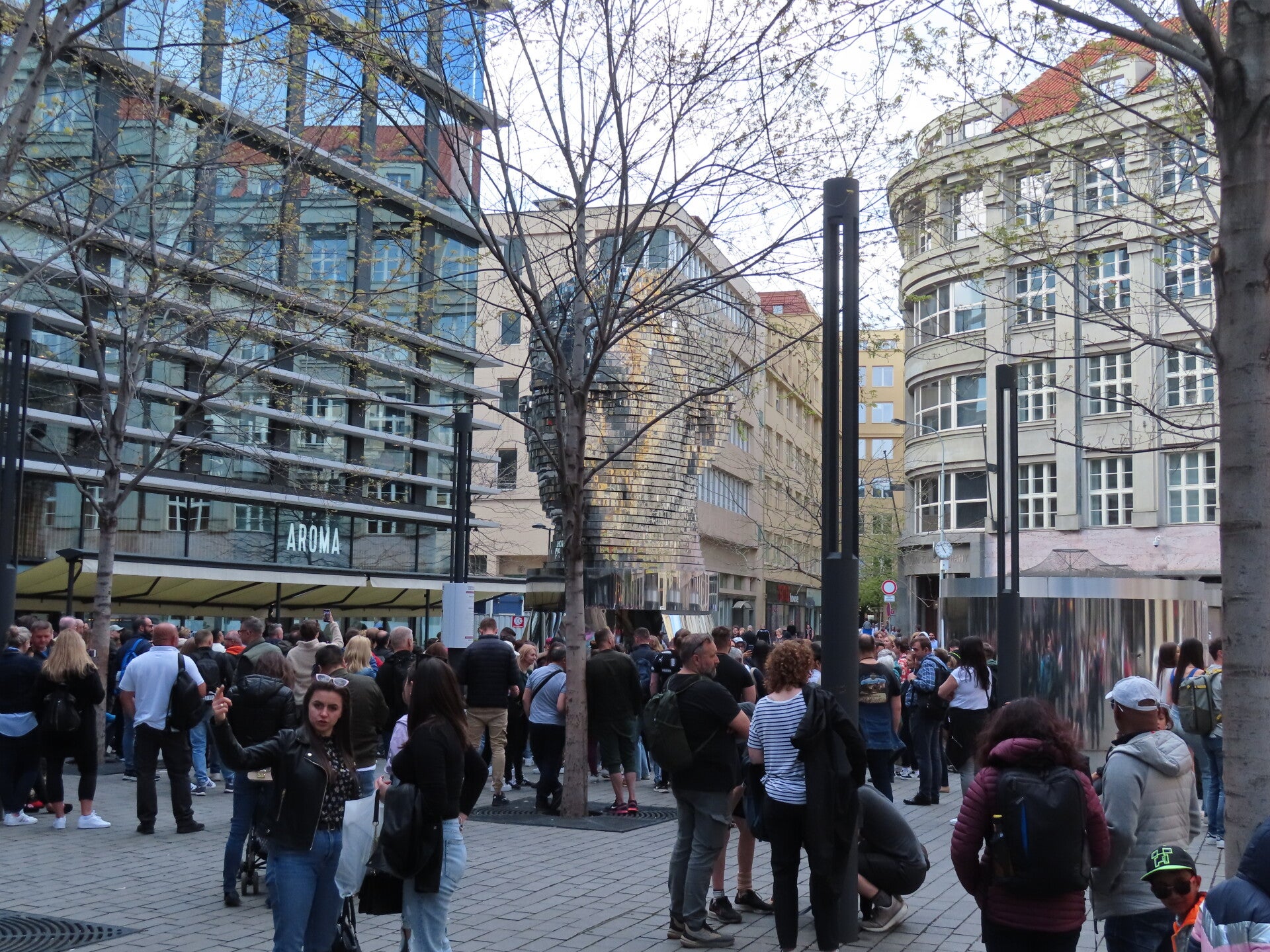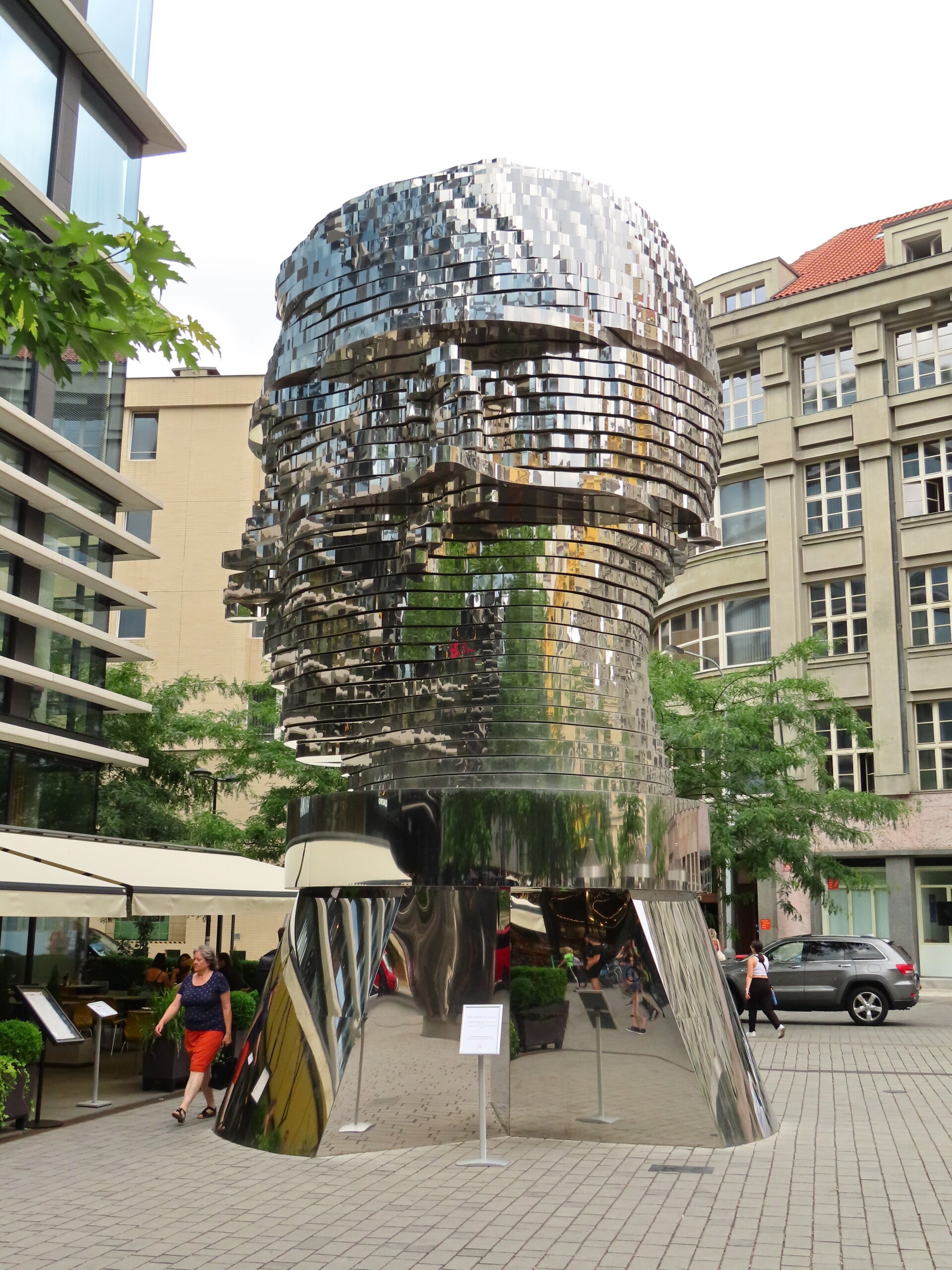 Walk around the artwork and observe the changing facial expressions and contours of Kafka's head. Sometimes it looks like a serene facial expression, while at other times the face seems to distort into an expression of fear or confusion.