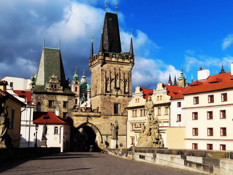On the Malá Strana side of the Charles Bridge, you’ll find two towers connected by a gate.